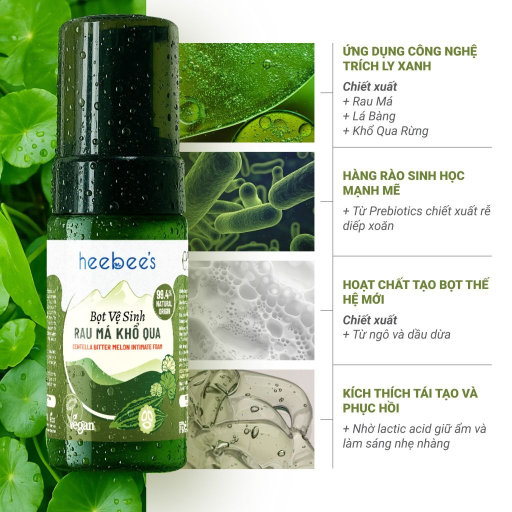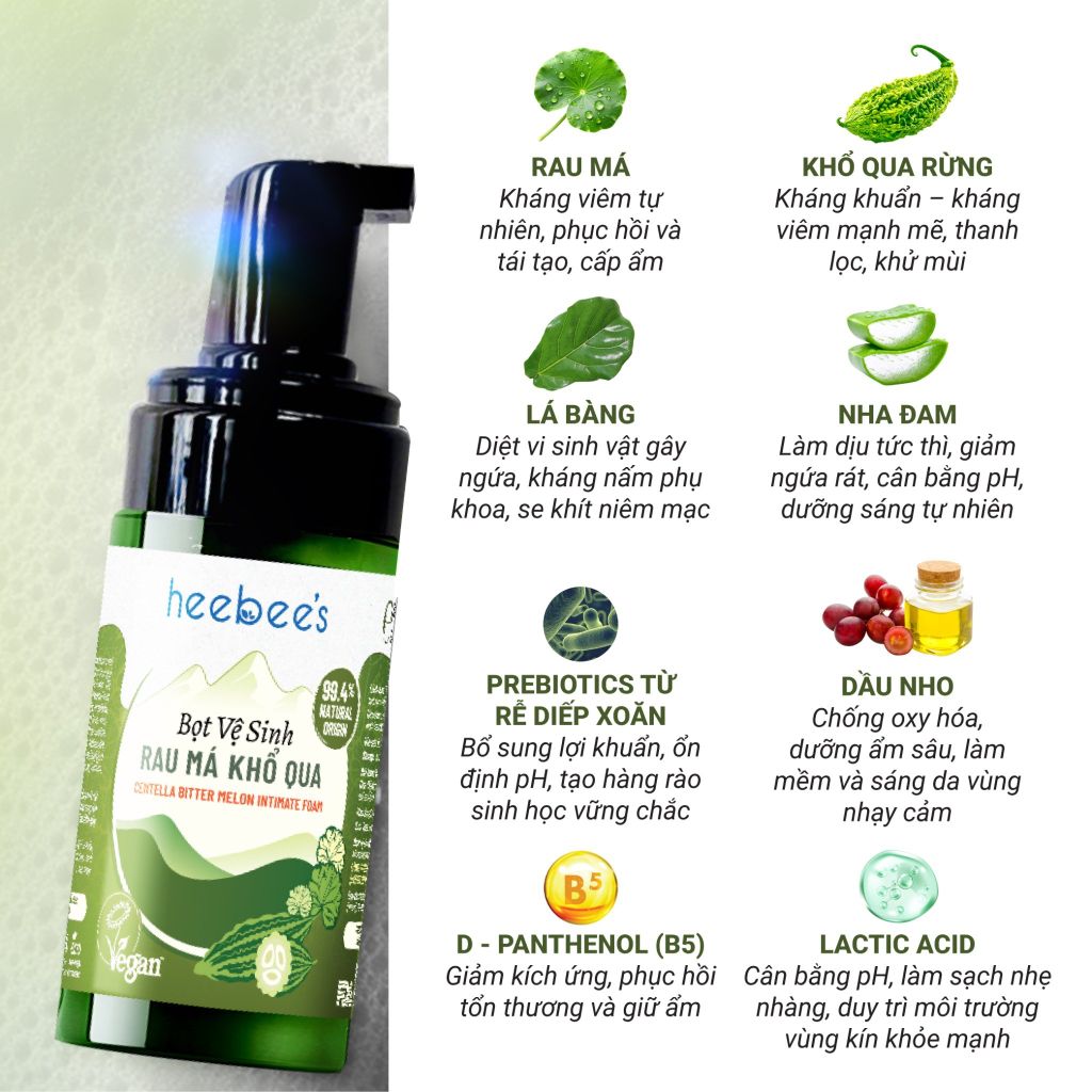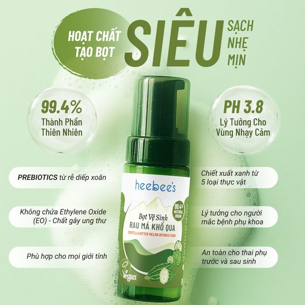 Bọt Vệ Sinh Rau Má Khổ Qua Rừng Thuần Chay là một trong những giải pháp Thuần Xanh tiên tiến nhất từ nhà Heebee’s giúp vệ sinh vùng nhạy cảm hằng ngày một cách khoa học, an lành, hiệu quả tối đa.