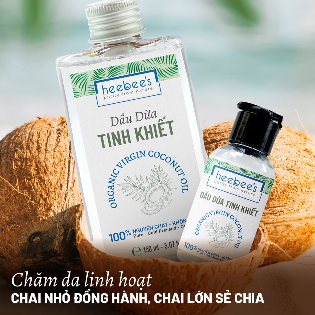 Dầu dừa với những công dụng tuyệt vời từ lâu đã trở thành liệu pháp làm đẹp thiên nhiên quen thuộc. Dầu dừa tinh khiết thuần chay Heebee's được sản xuất bằng công nghệ ép lạnh hiện đại, nguyên chất 100% không qua pha trộn, không lẫn tạp chất, nhằm giữ lại nguyên vẹn những dưỡng chất như vitamin E và các Acid béo không no…có nhiều lợi ích trong việc dưỡng ẩm, kháng khuẩn, chăm sóc làn da ẩm mịn căng khỏe. Đồng thời, giúp phục hồi và nuôi dưỡng mái tóc dày mượt, óng ả.