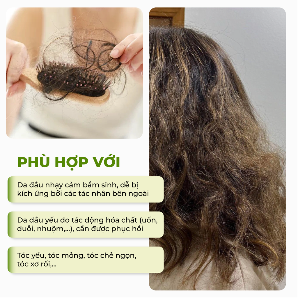 Phù hợp cho những mái tóc lão hóa, tạo kiểu, khô xơ cần phục hồi, ưu tiên độ lành tính tự nhiên và an toàn cho phụ nữ mang thai, sau sinh và trẻ nhỏ.