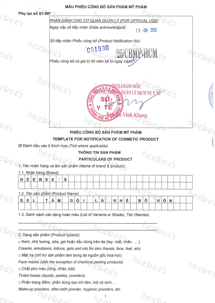 Phiếu Công Bố Mỹ Phẩm được cấp bởi Sở Y Tế