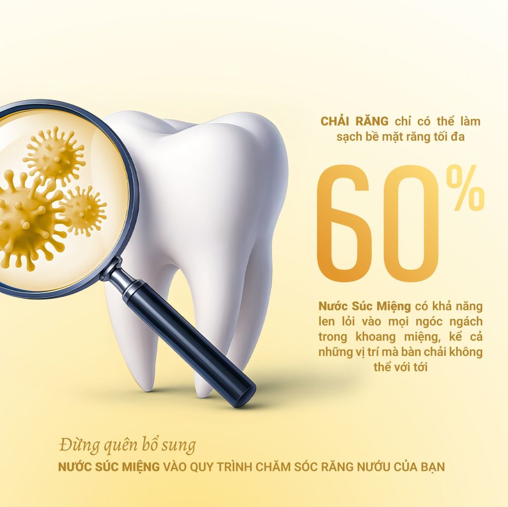Súc và ngậm trong miệng làm sạch mọi ngóc ngách trong khoang miệng và họng từ 1 – 3 phút.
