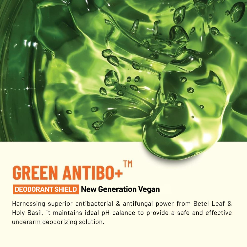Featuring a 3-Tier Deodorizing Mechanism: Bacterial Inhibition – Deep Cleansing – Biological Skin Protection. This breakthrough formula utilizes FruityGlowAHA, SalixBHA, and GreenAntiBO+, combined with Betel Leaf & Holy Basil extracts: