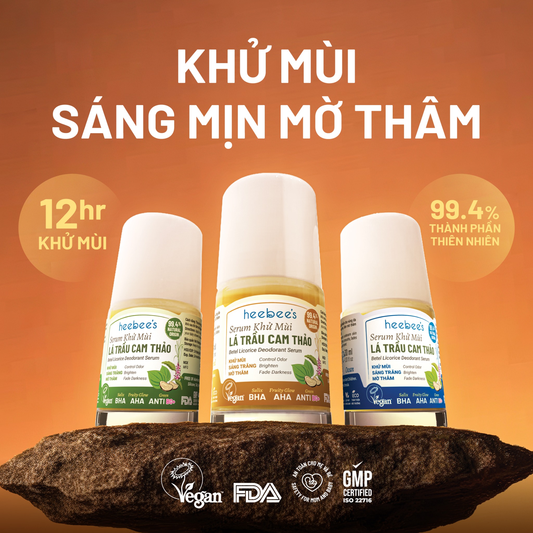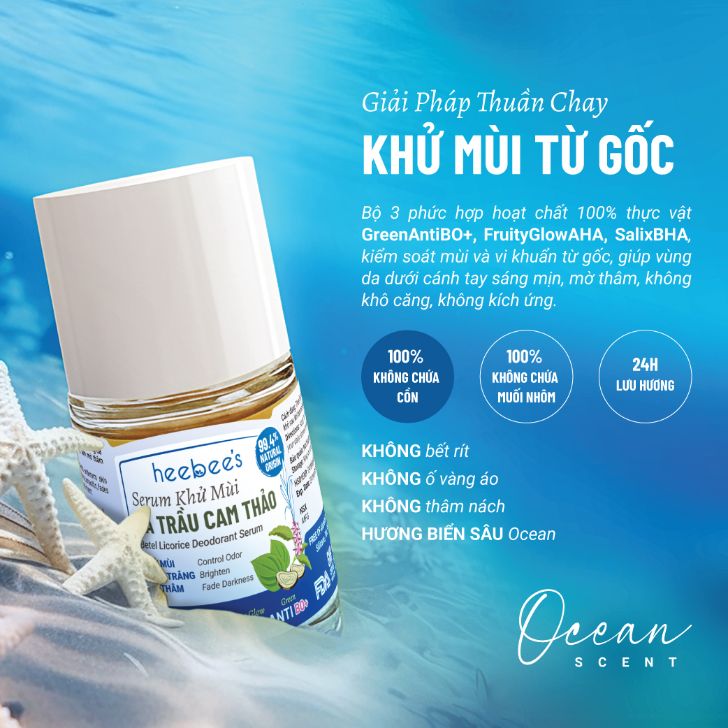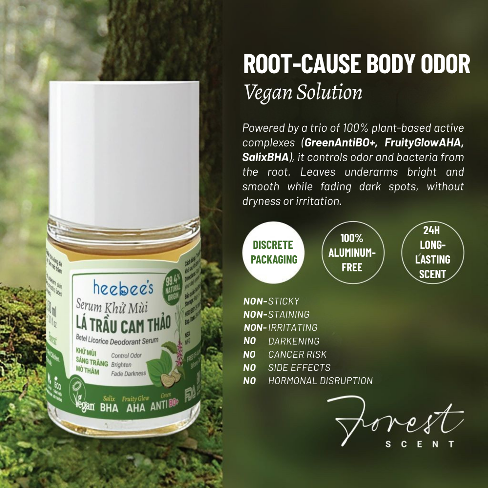 GreenAntiBO+: A pioneering achievement of Heebee Lab, designed as a new-generation vegan deodorizing shield. This exclusive formula combines plant-based acyl lactylate & triethyl citrate with the antibacterial and antifungal power of betel phenol and chavicol (from Betel Leaf & Holy Basil). Its smart selective mechanism blocks odor-causing bacteria while preserving the skin's biological balance, delivering pure, safe, and sustainable deodorizing efficacy.