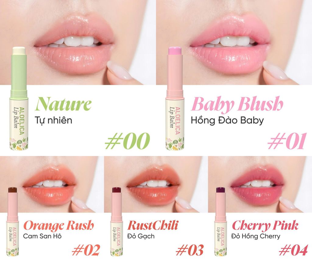 AloeLica Lip Balm là bộ sưu tập trọn vẹn giữa dưỡng chất thiên nhiên thuần khiết và sắc màu thuần xanh dành riêng cho nét đẹp bờ môi, mang đến 5 lựa chọn – 5 sắc thái khác nhau cho đôi môi.