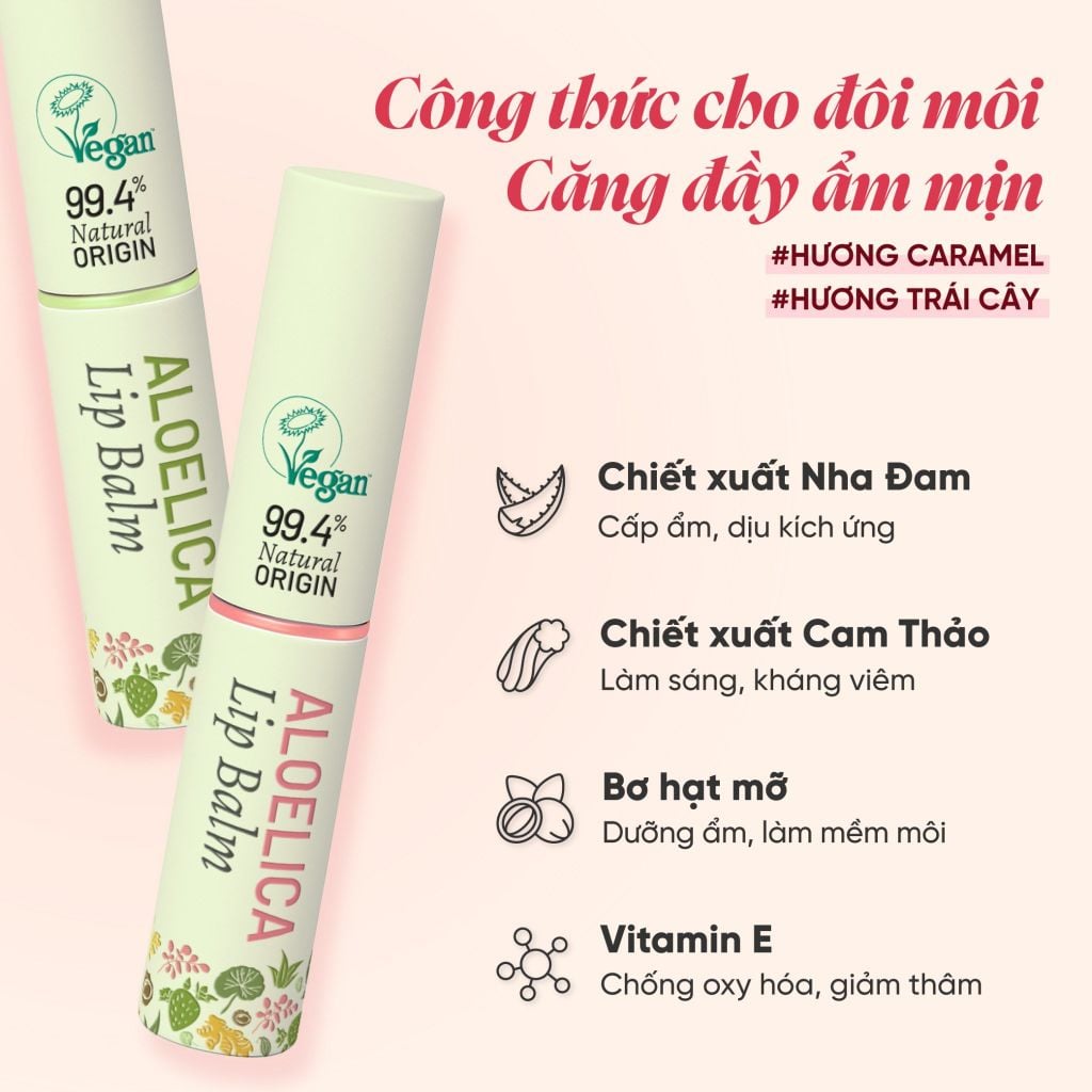 - Son Dưỡng Thuần Chay Nha Đam Cam Thảo AloeLica giúp phục hồi chuyên sâu cho môi sau phun xăm, chàm hay hậu phẫu, giúp tái tạo và làm hồng tự nhiên