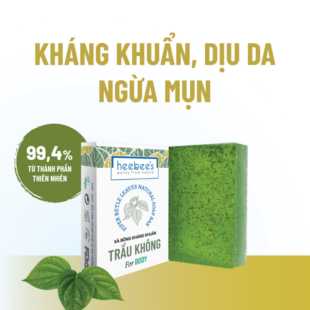 Từ lâu, Lá Trầu Không đã được trân quý bởi khả năng kháng khuẩn và làm đẹp da. Đội ngũ Heebee's đã khéo léo kết hợp tinh hoa truyền thống này với công nghệ hiện đại để tạo nên Xà Bông Tắm Trầu Không Kháng Khuẩn Ngừa Mụn Heebee's, mang đến giải pháp chăm sóc da thuần khiết với 99.4% thành phần thiên nhiên. Không chỉ là một sản phẩm làm sạch, đây còn là một trải nghiệm tắm đầy cảm hứng với hương thơm “Chạng Vạng” – sự hòa quyện của ly trắng tươi mát, xạ hương trắng thanh lịch và trầm hương huyền bí, đưa bạn vào khoảnh khắc thư giãn, tái tạo năng lượng. Sản phẩm thuộc bộ sưu tập “Chạm Vào Thiên Nhiên” của Heebee's, tôn vinh vẻ đẹp tự nhiên và bền vững.